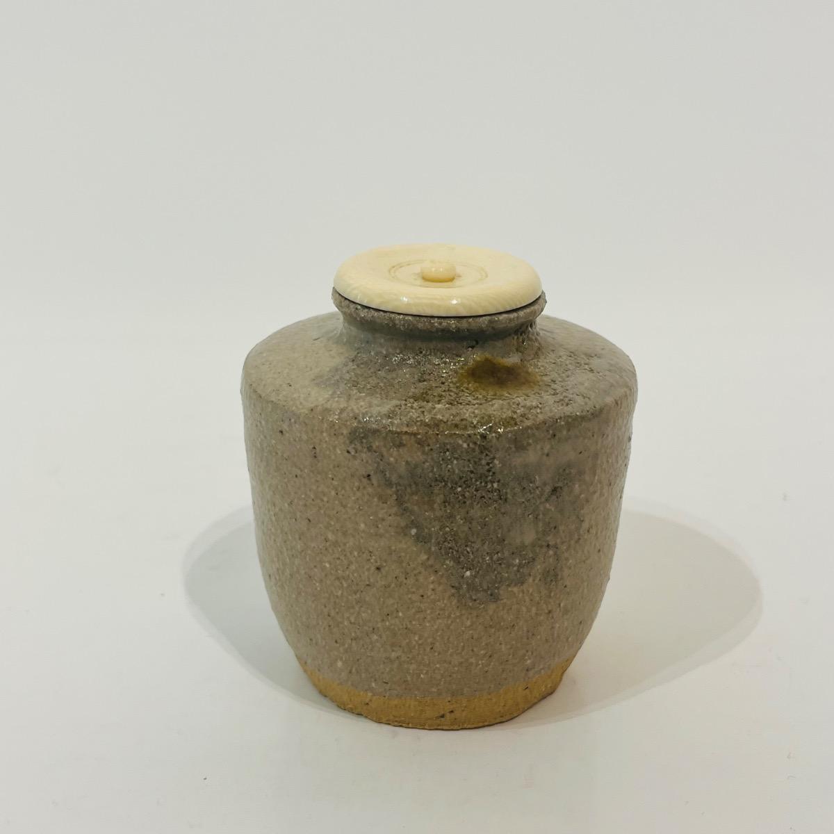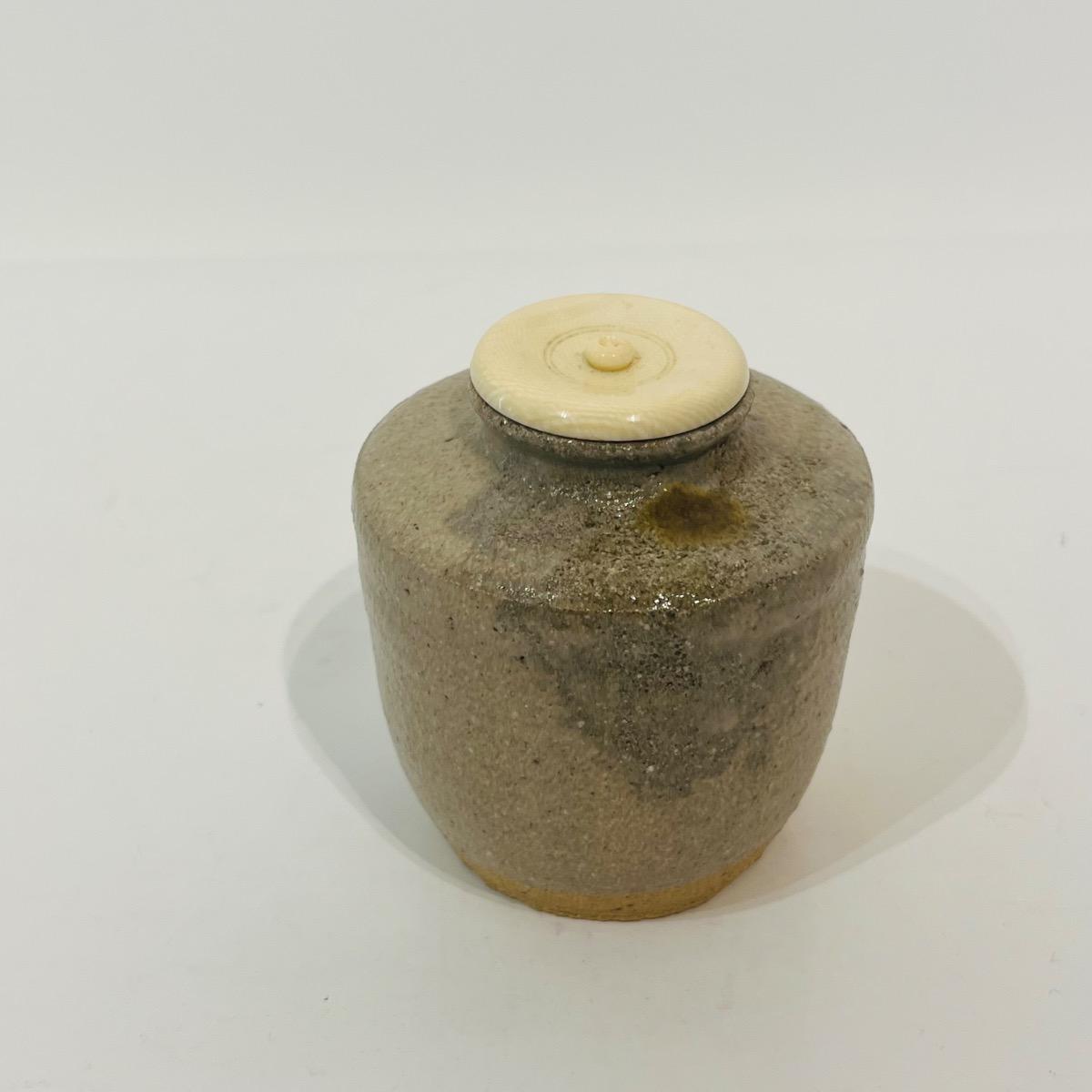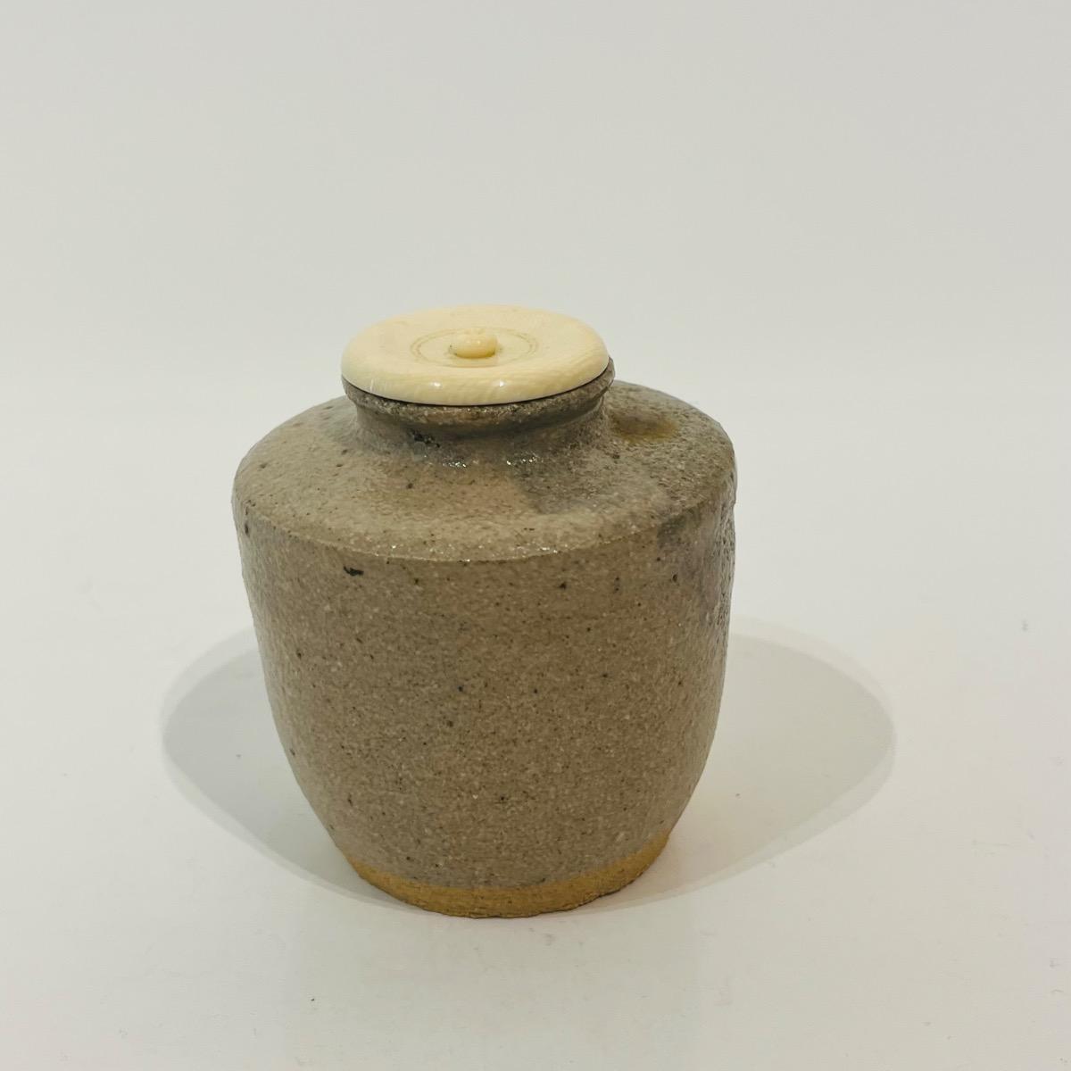 Cha-ire, boîte à thé en céramique de Zeze de l'artiste Shinjo Iwasaki (1913-2009), avec son couvercle en os recouvert de feuille d’or.
