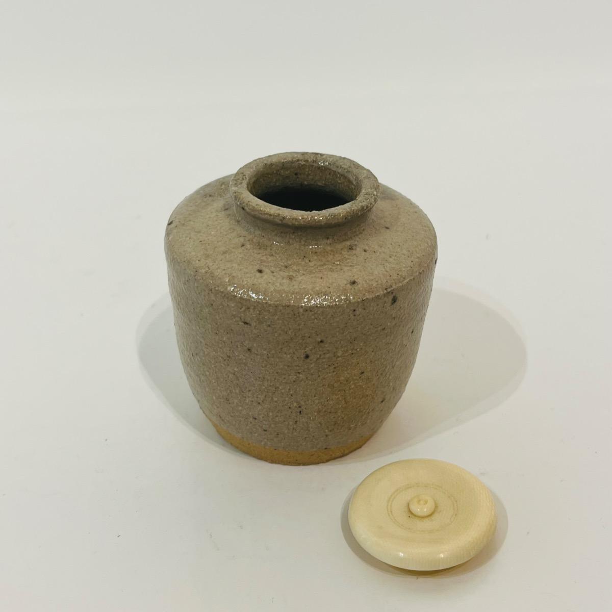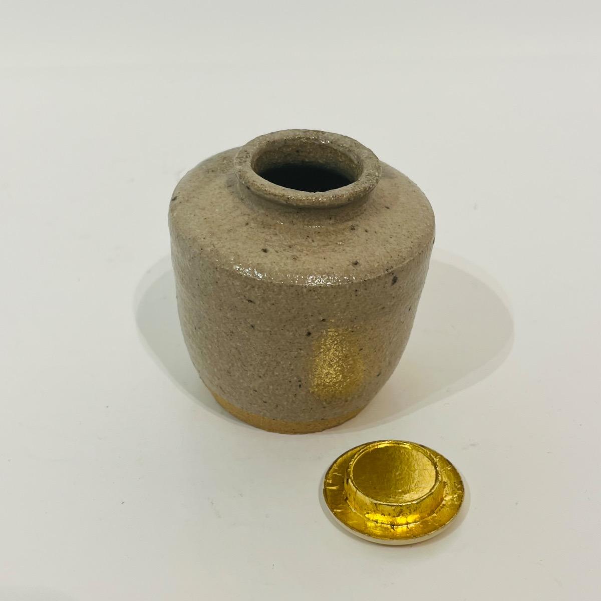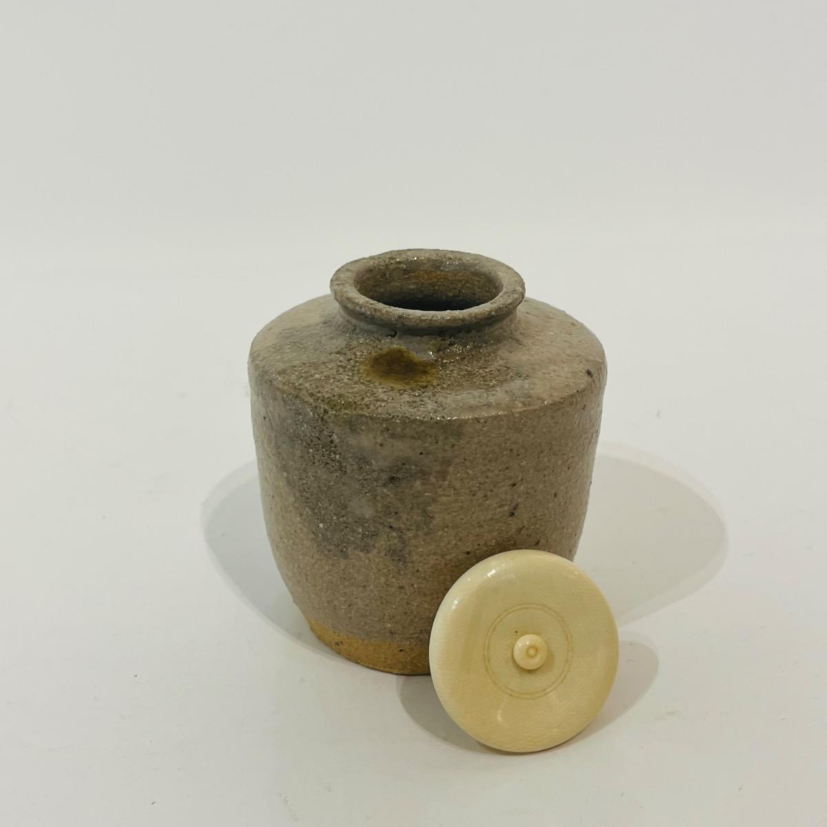 Cha-ire, boîte à thé en céramique de Zeze de l'artiste Shinjo Iwasaki (1913-2009), avec son couvercle en os recouvert de feuille d’or.