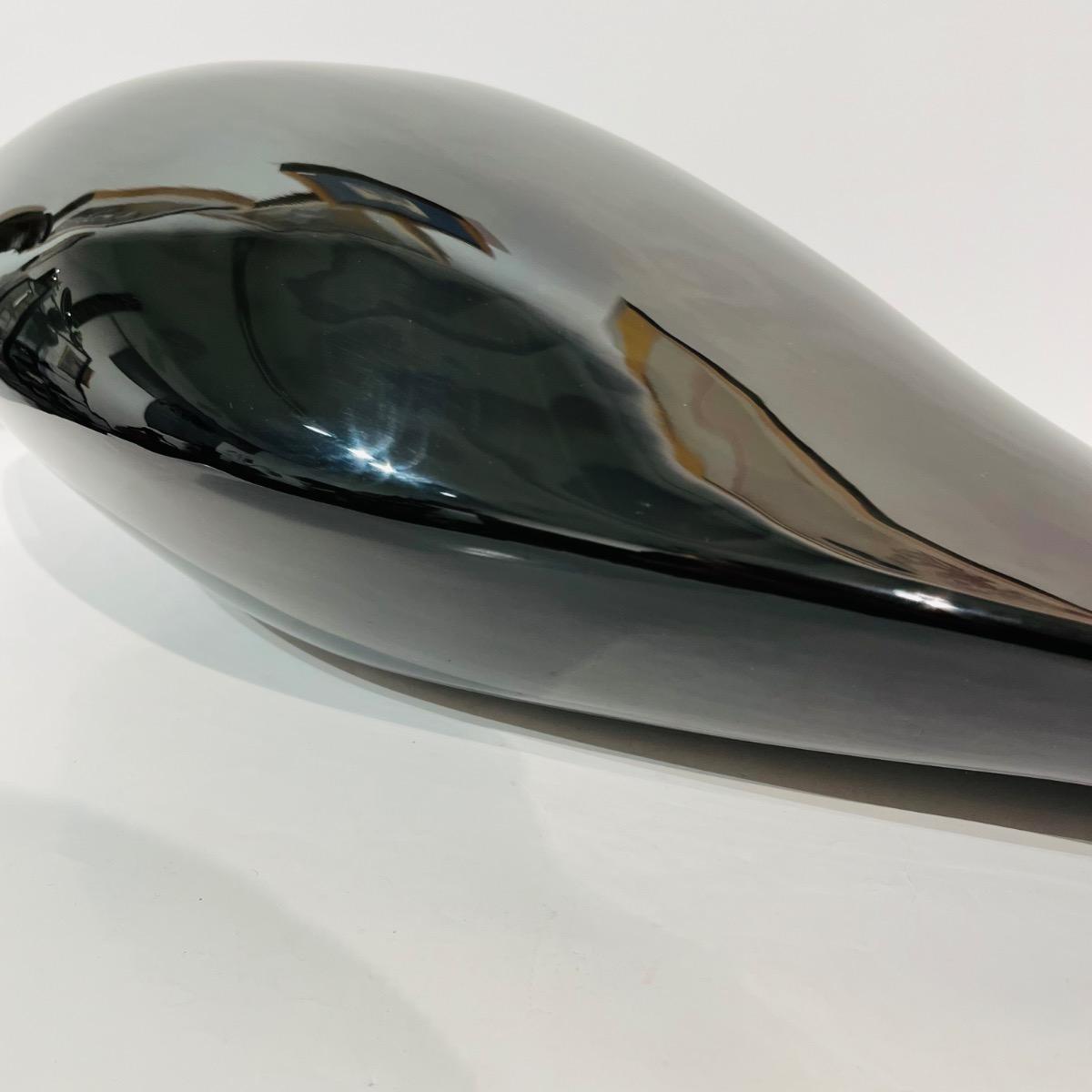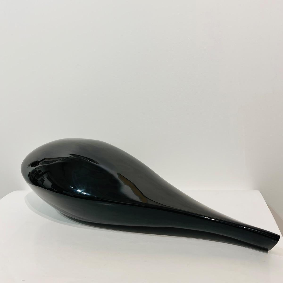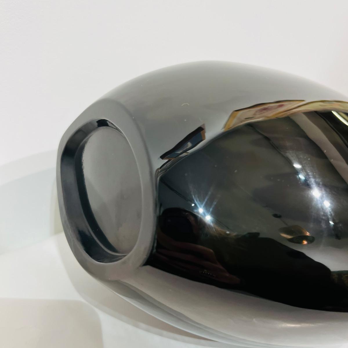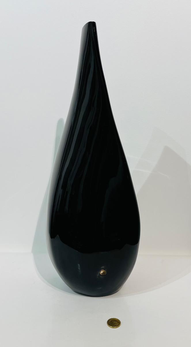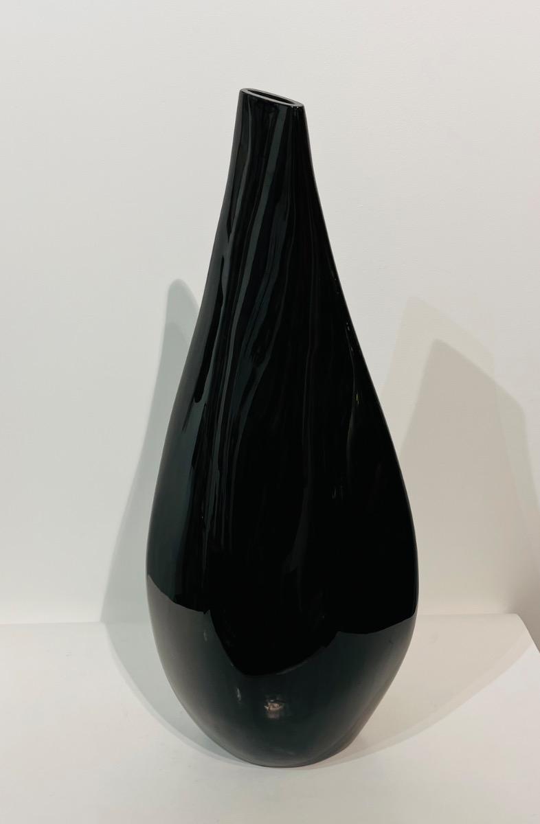Grand et élégant vase en laque au motif abstrait vert et noir.