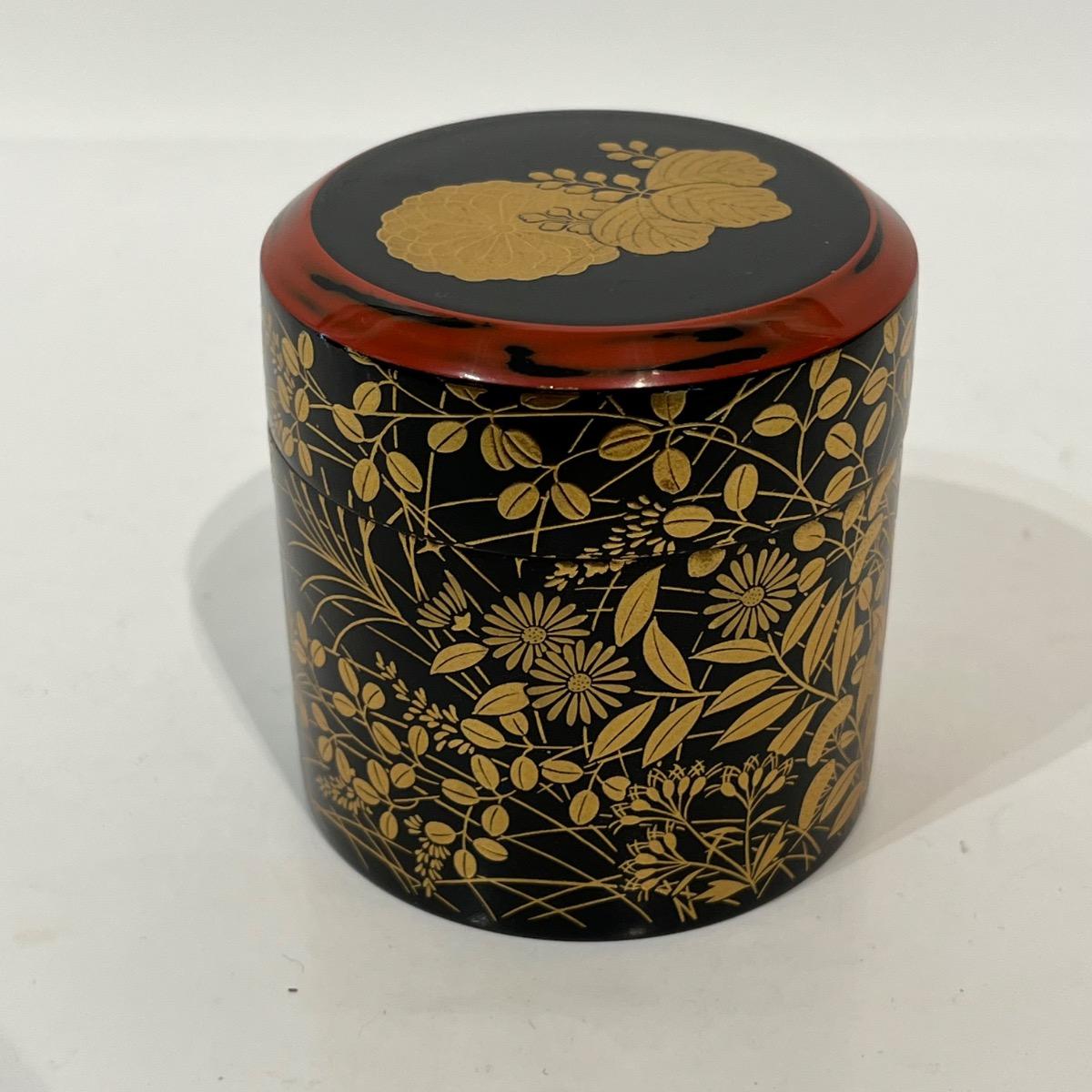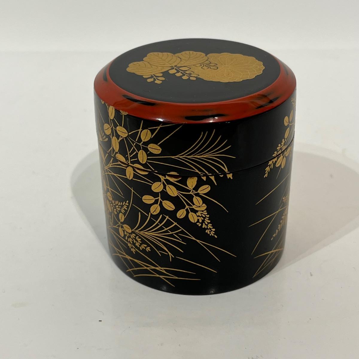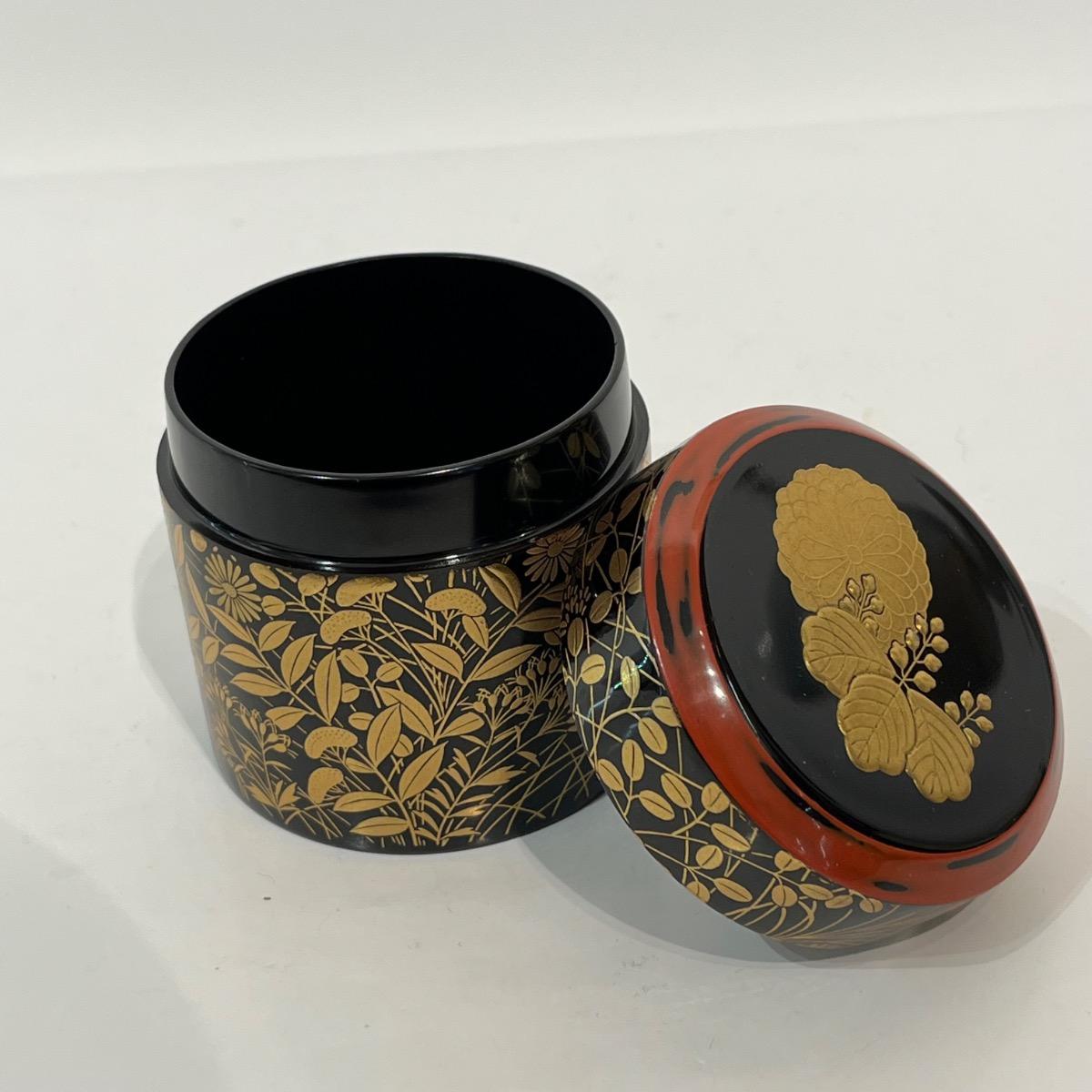 Natsume boîte à thé laqué japonaise paulownia et chrysanthème