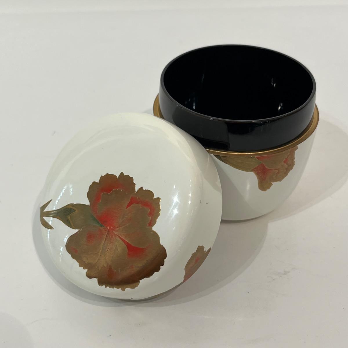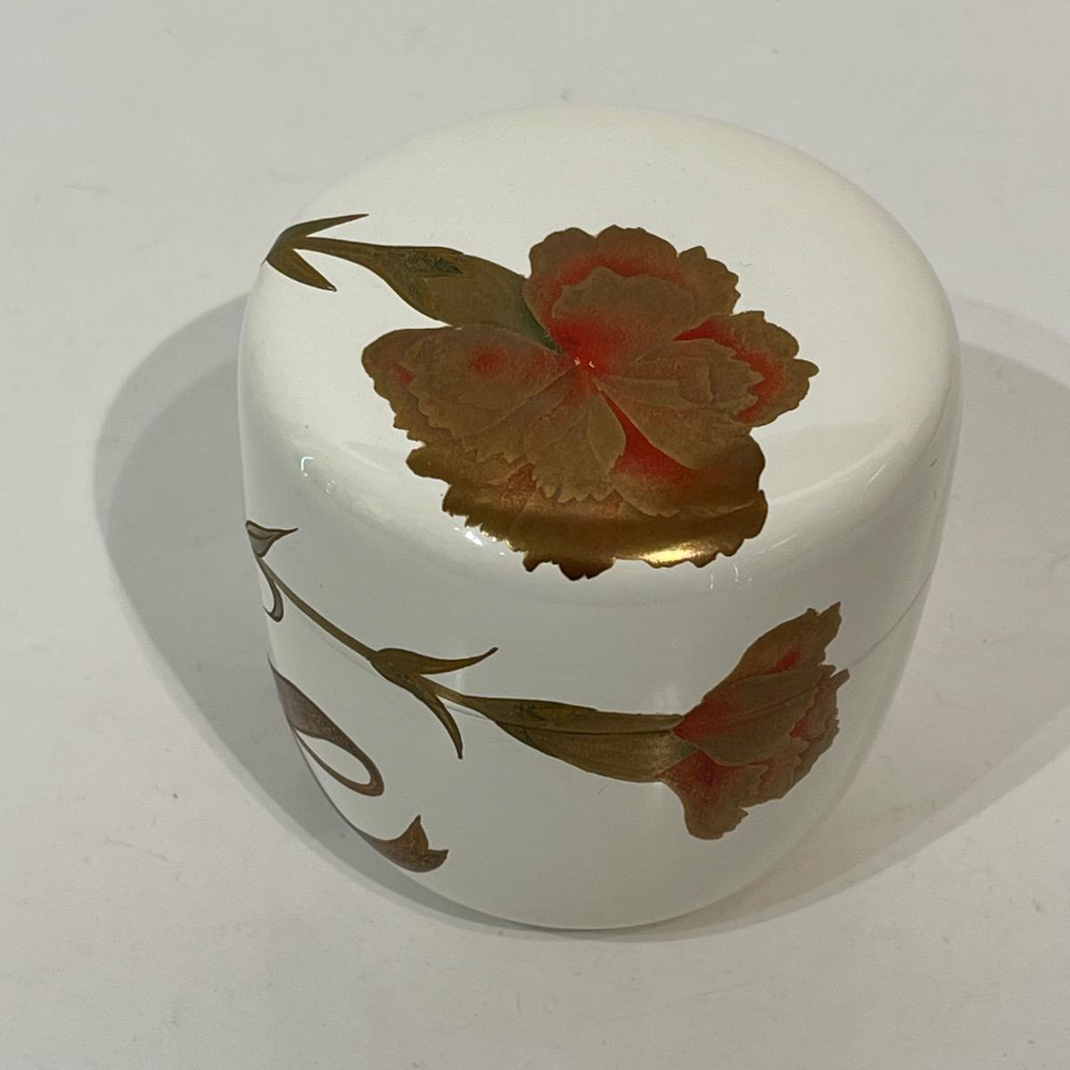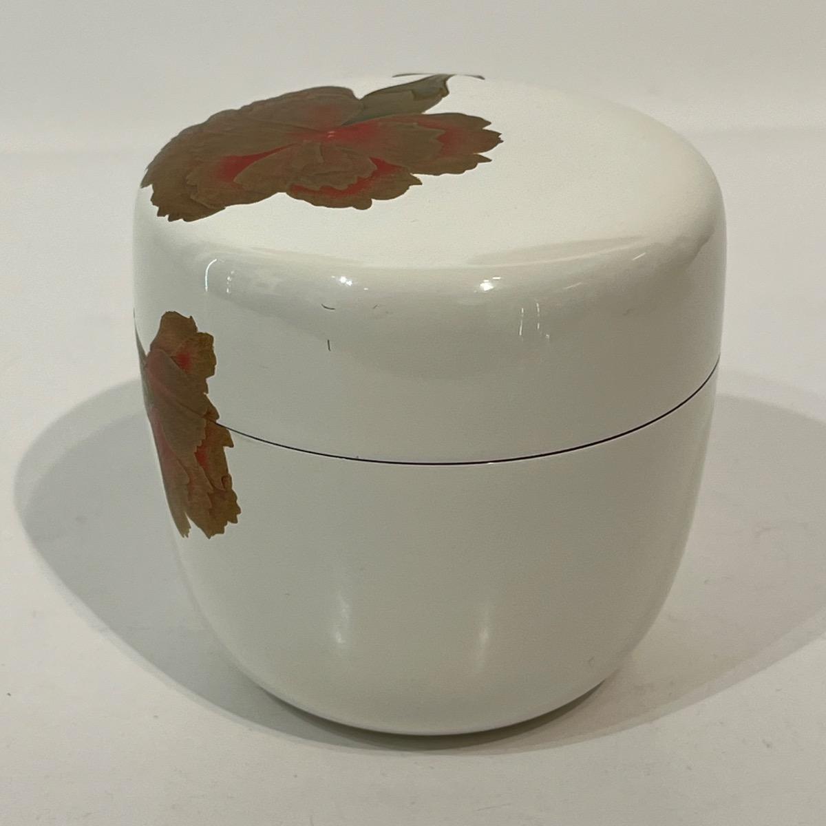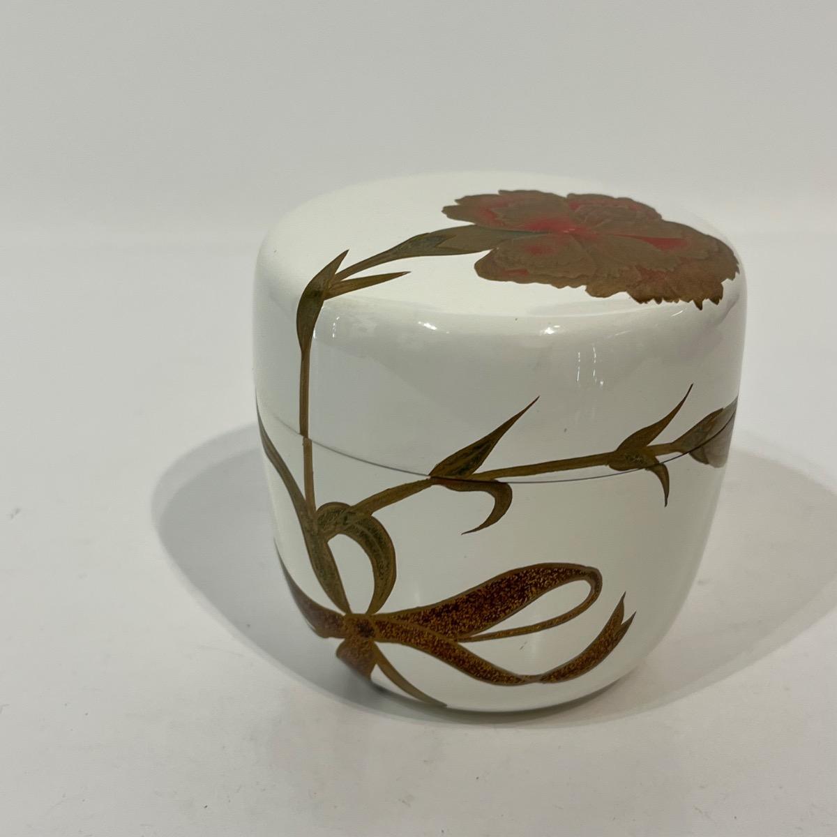 Natsume, boîte à thé laquée blanche et œillets -Japon