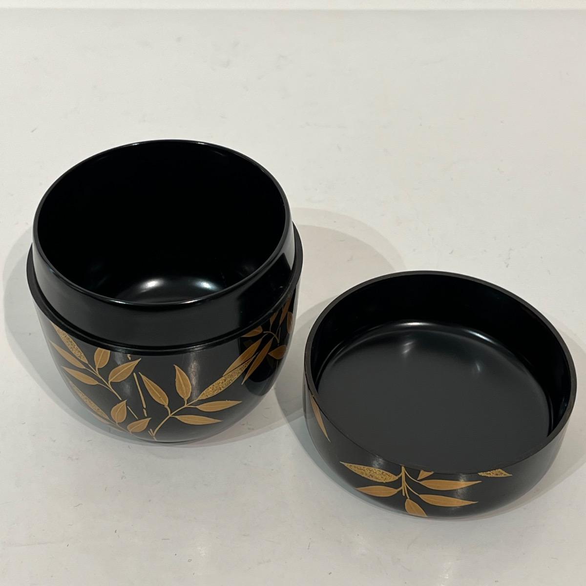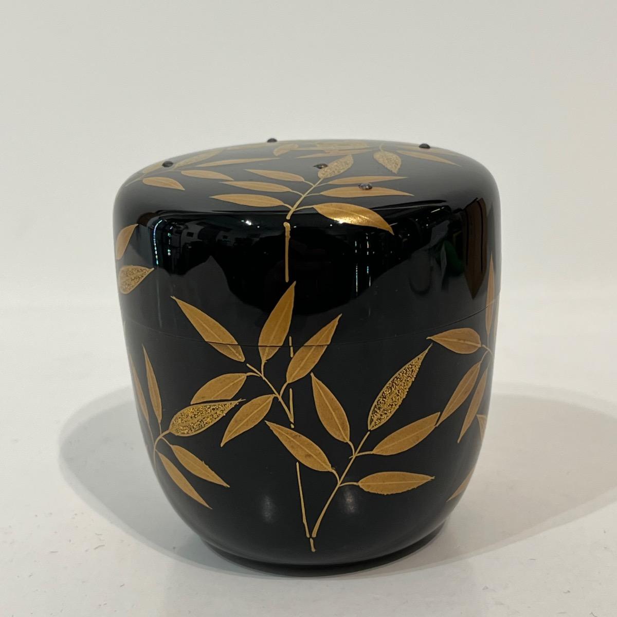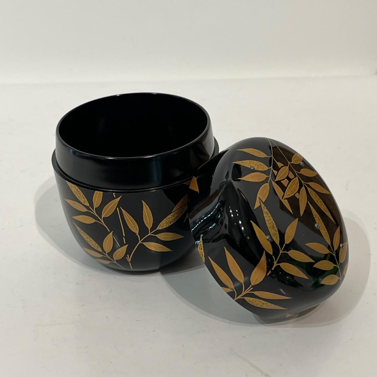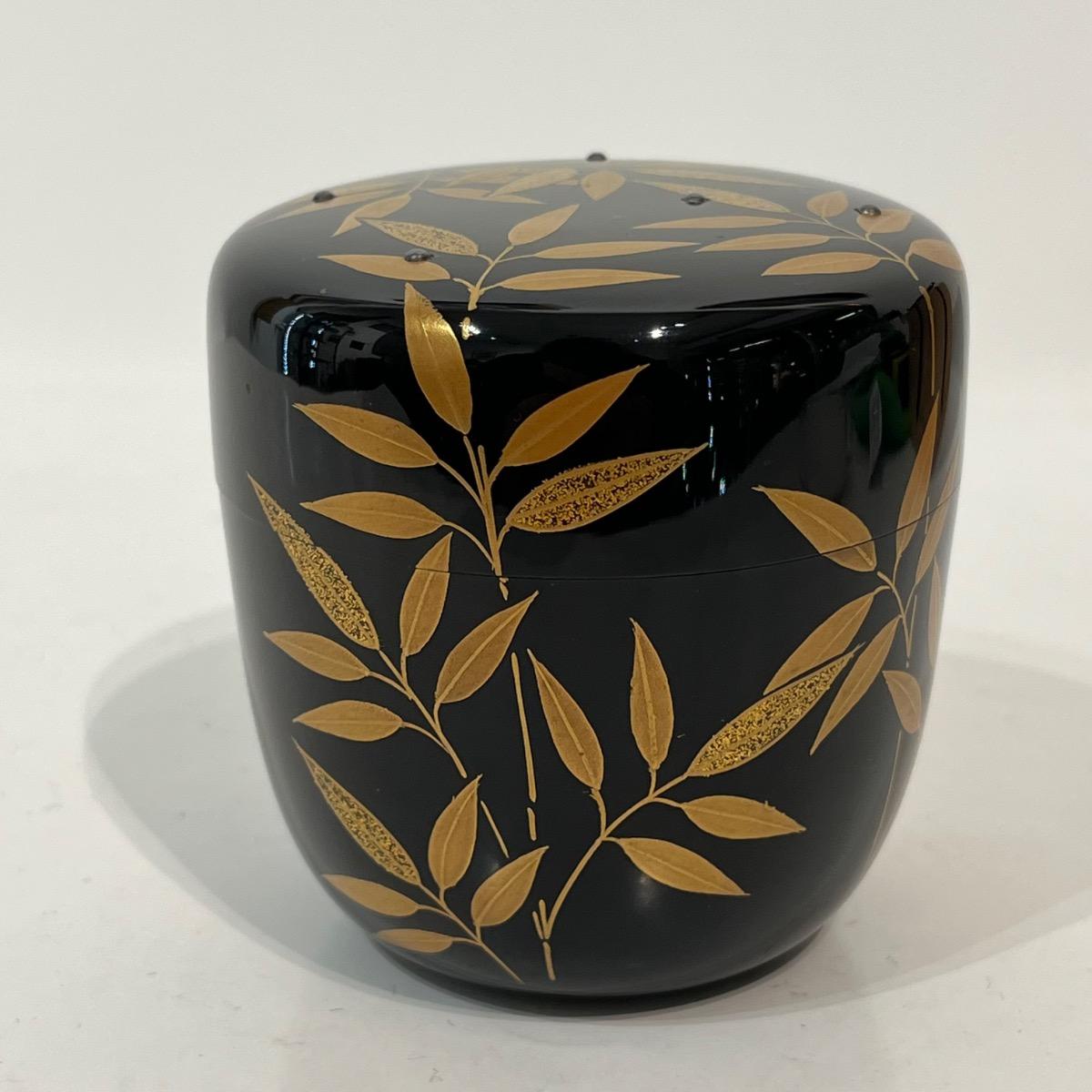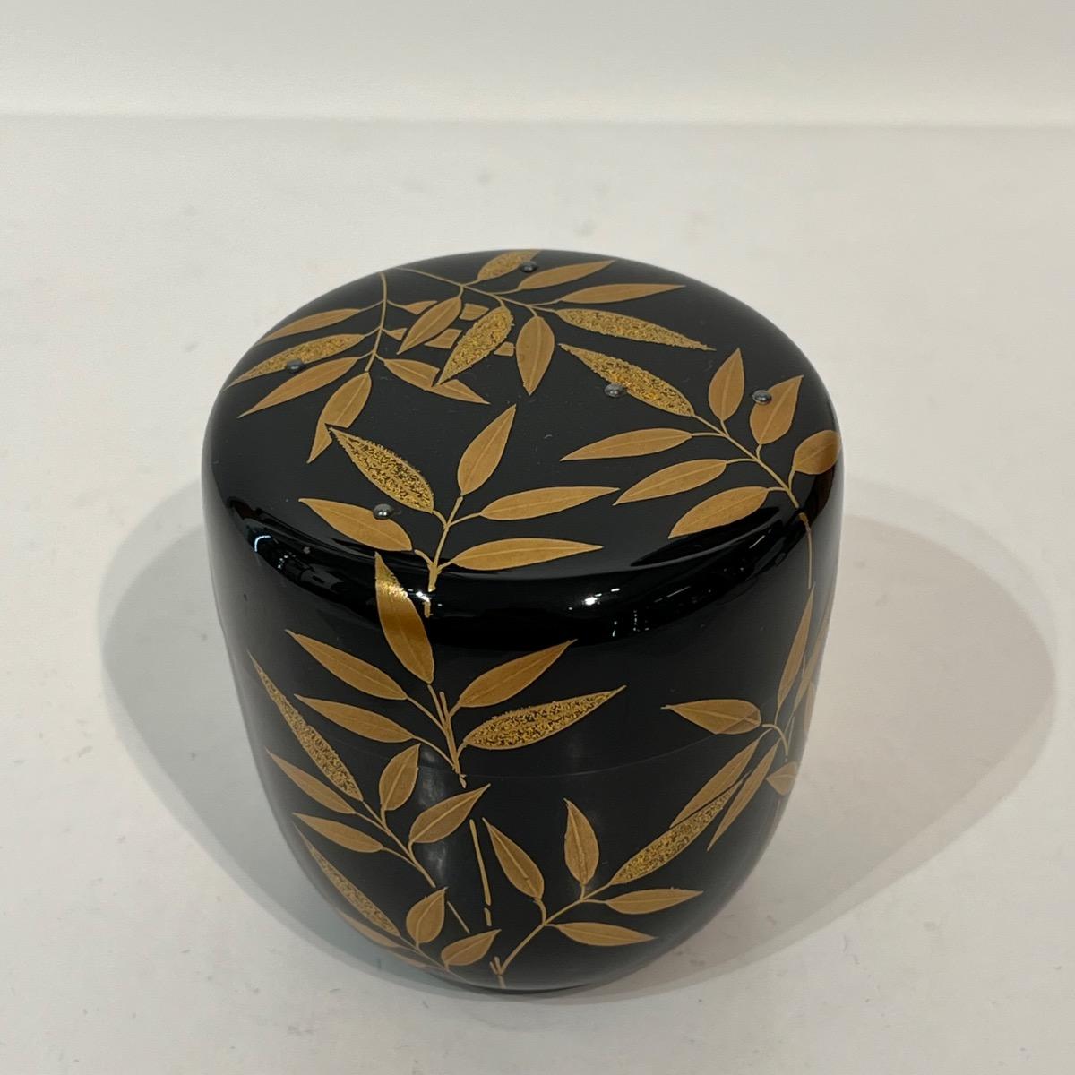 Natsume boîte à thé laquée feuilles de bambou