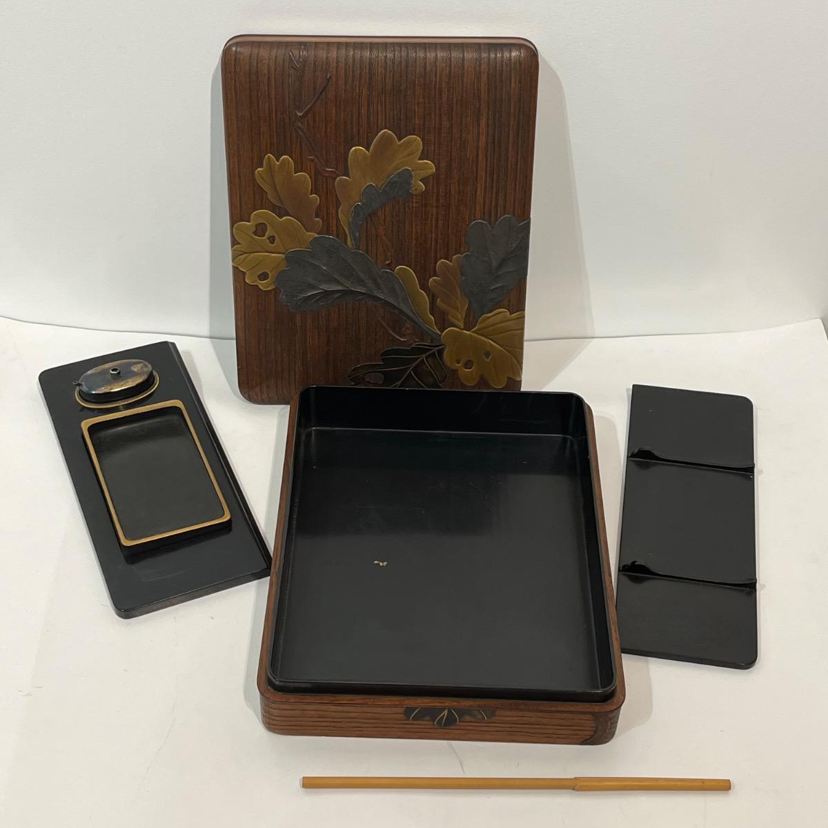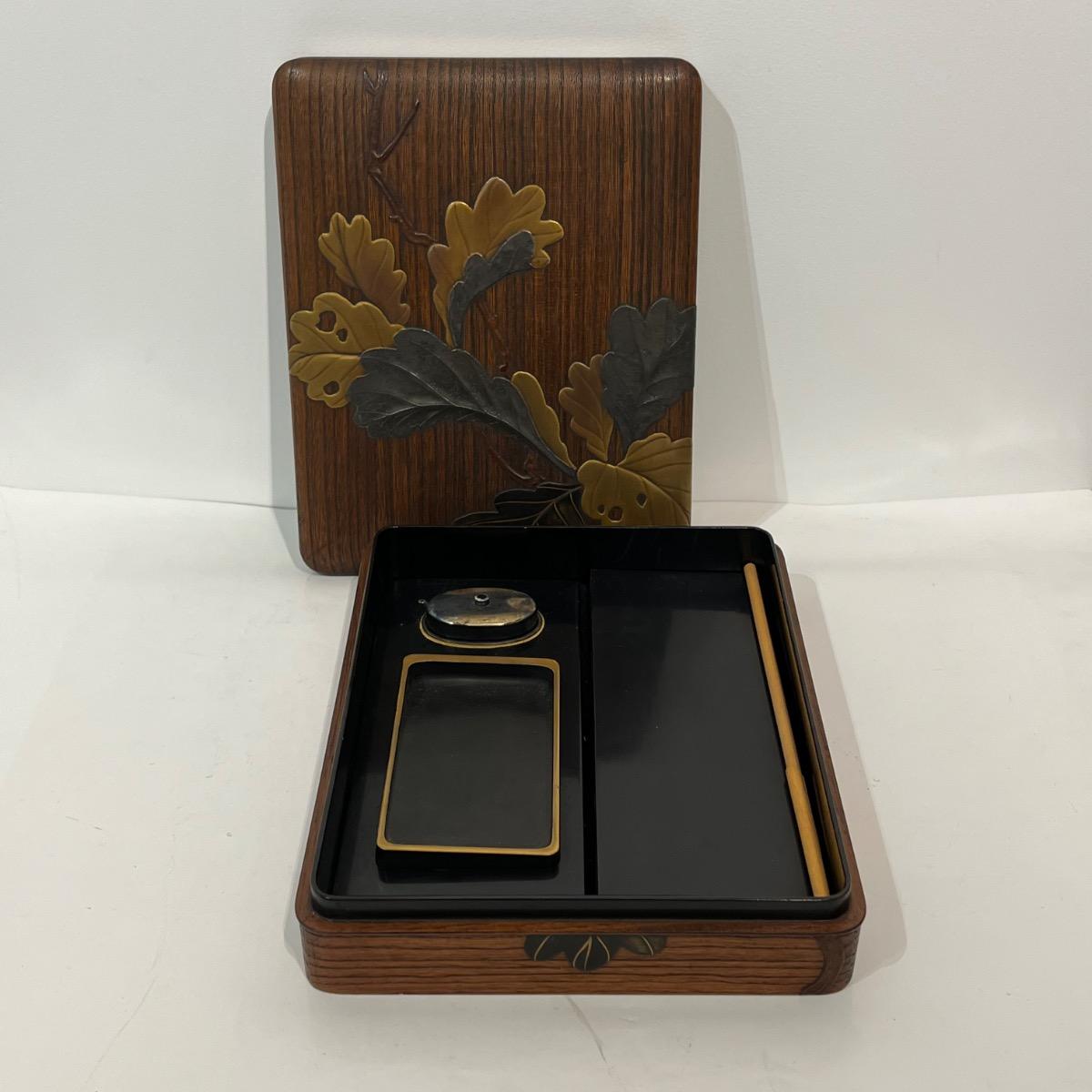 Suzuribako feuilles de chêne, boîte à calligraphie