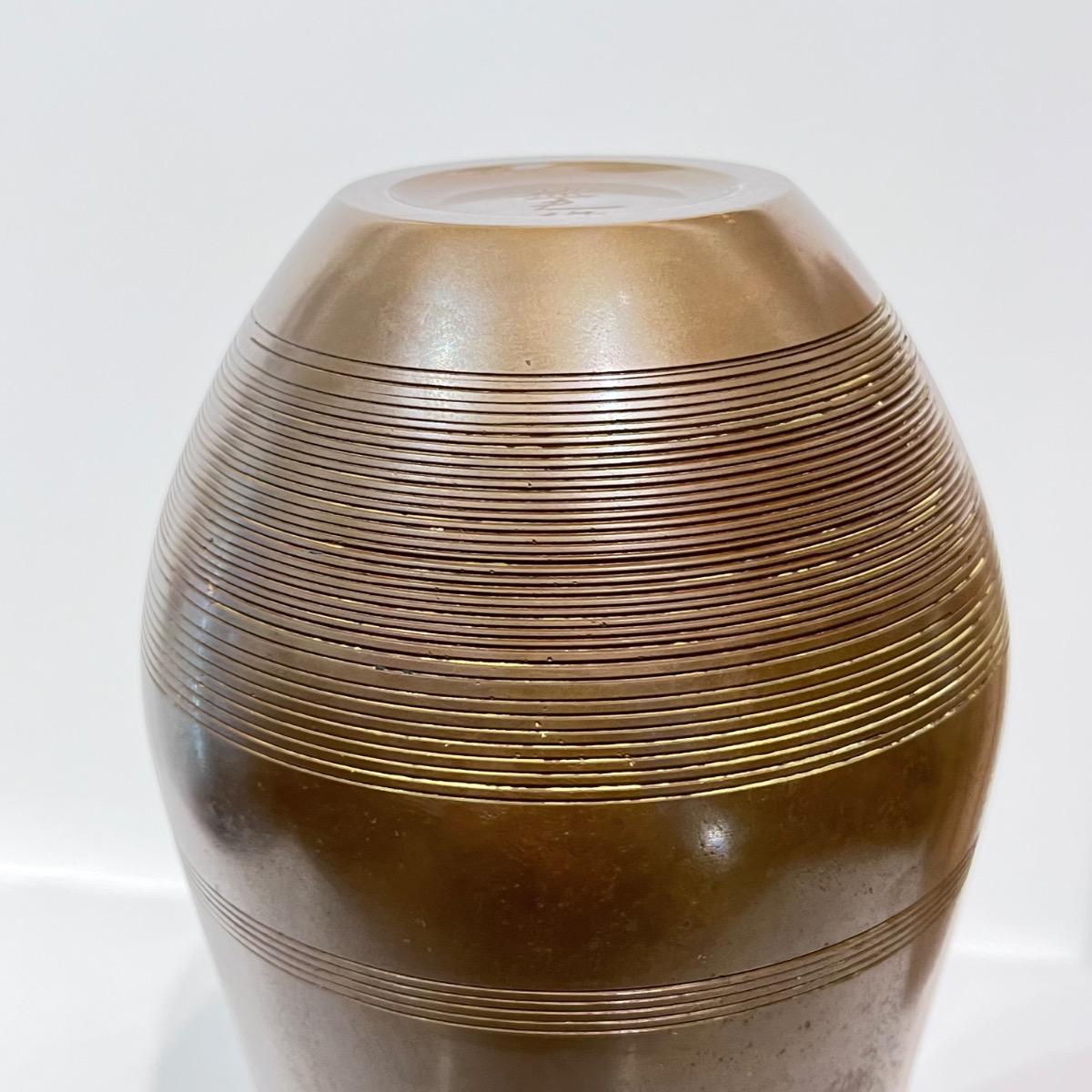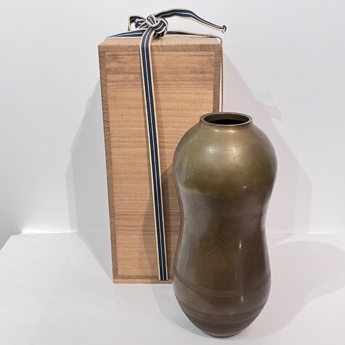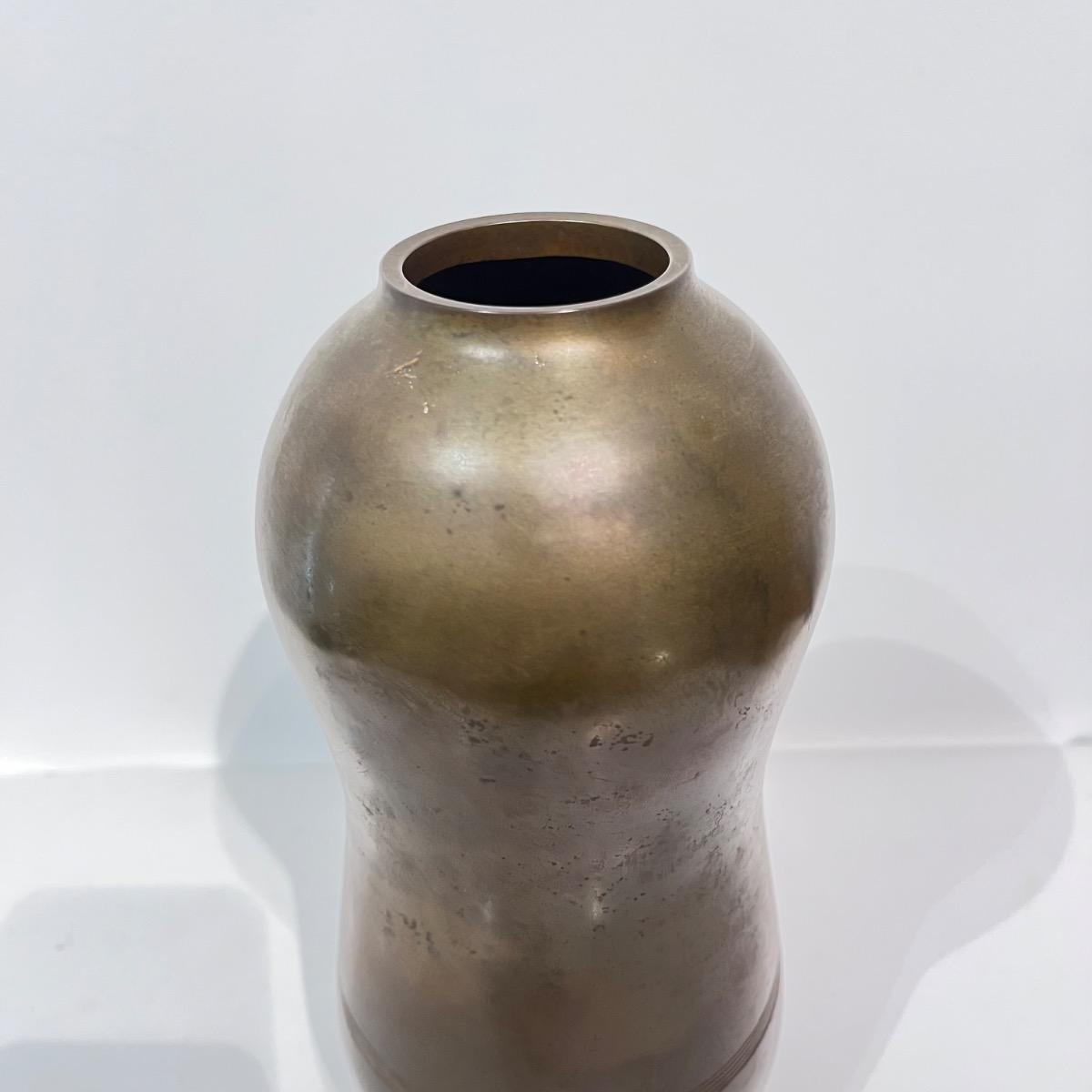 Vase en bronze aux lignes minimalistes de l'artiste Ekishu.