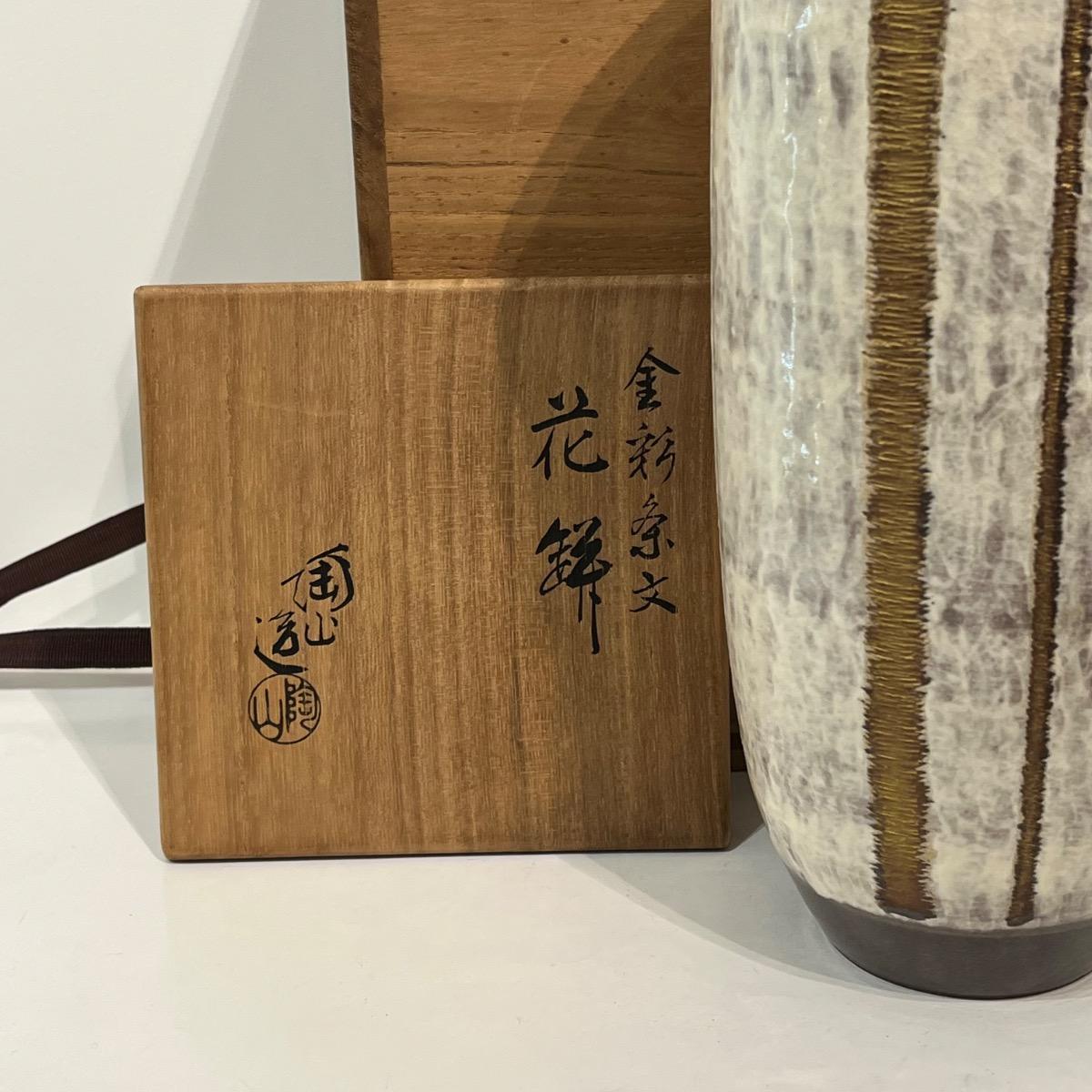 Haut vase en céramique à l'émail blanc et lignes travaillées à l'or.