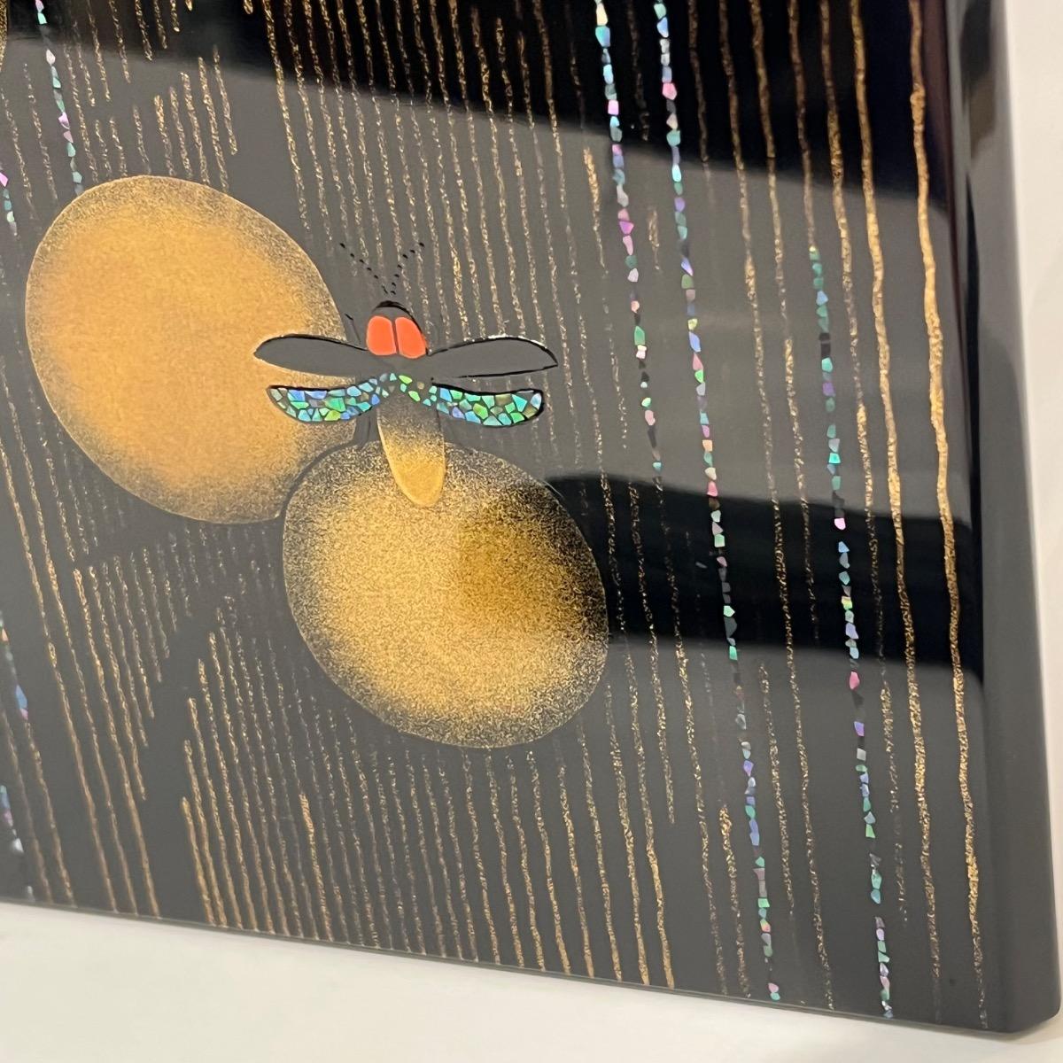 Un travail de laque exceptionne, d'une grande élégance et poétique, reprenant le thème traditionnel japonais du kacho, animal et végétal.
