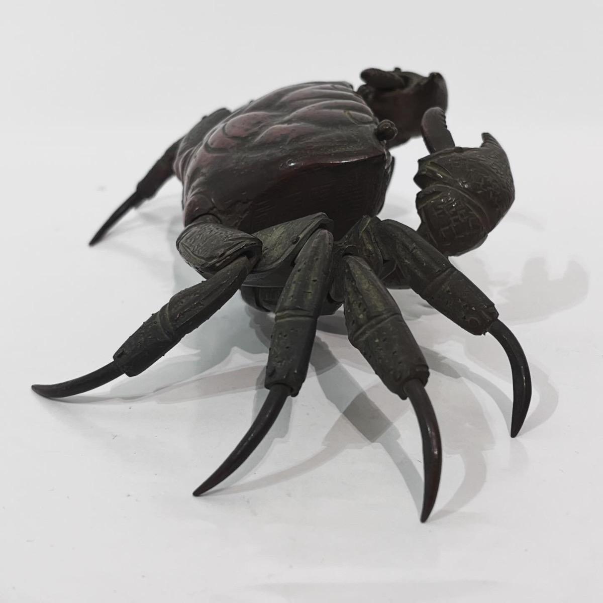 Jizaimono, sculpture articulée en bronze représentant un crabe. Japon, ère Meiji, 25 x 11 x 4,5 cm.