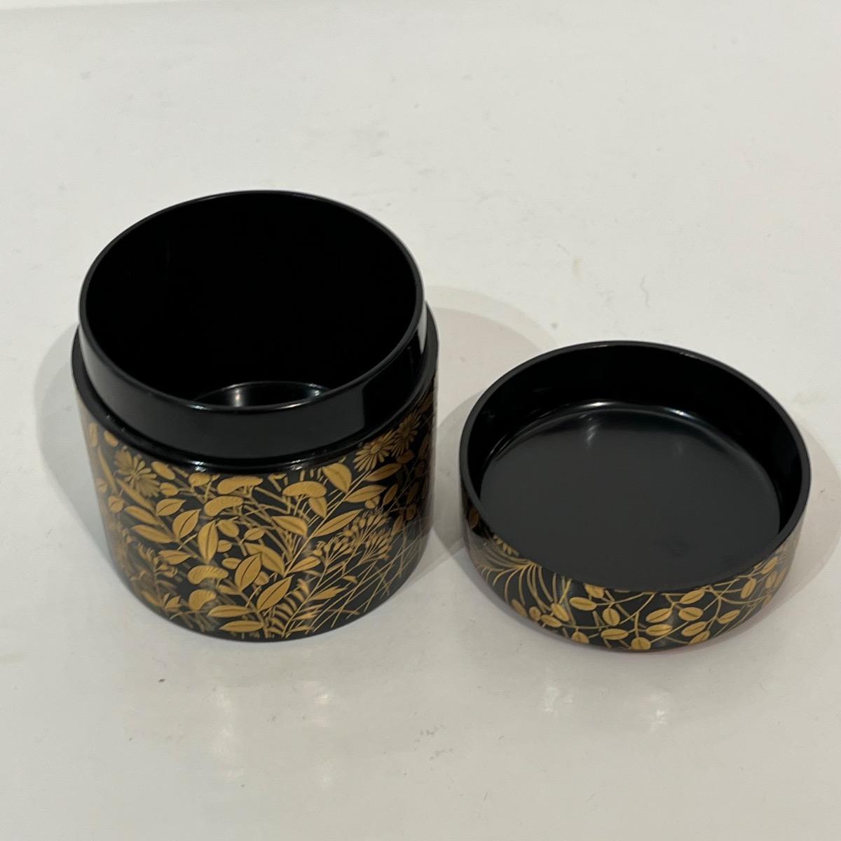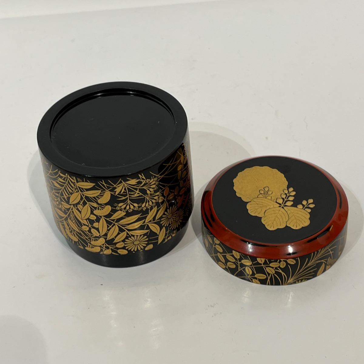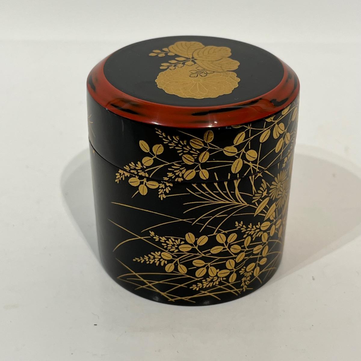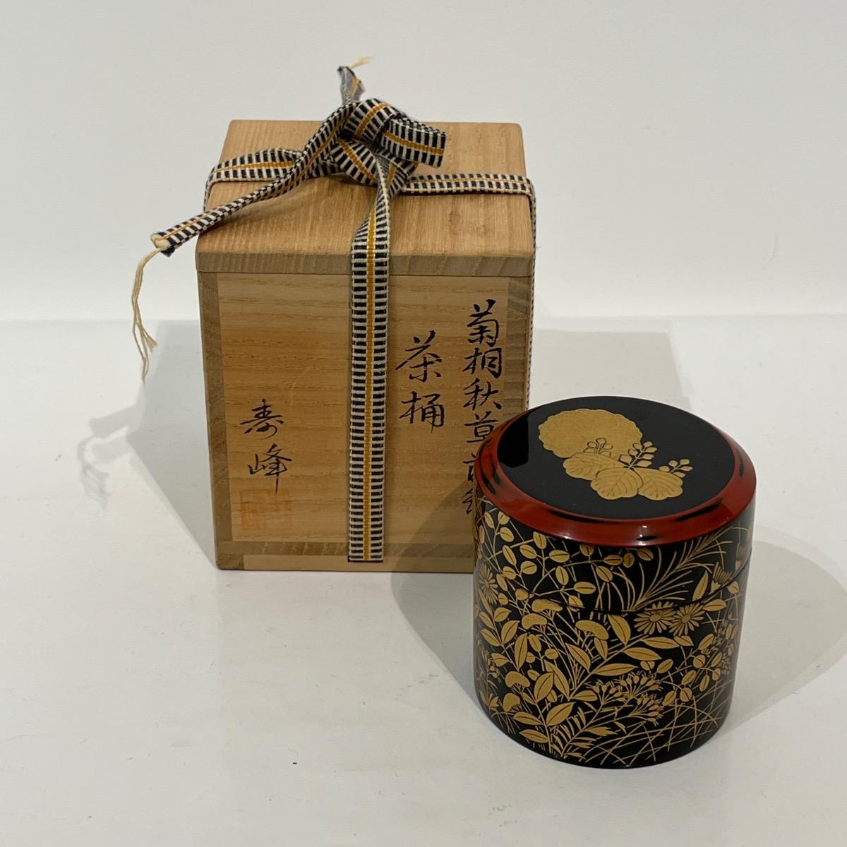 Natsume boîte à thé laqué japonaise paulownia et chrysanthème
