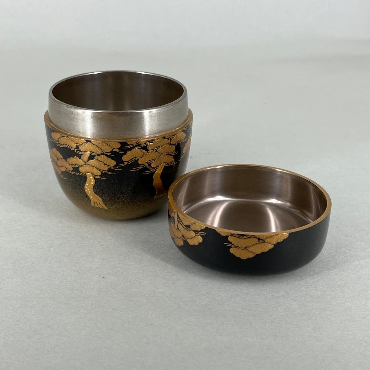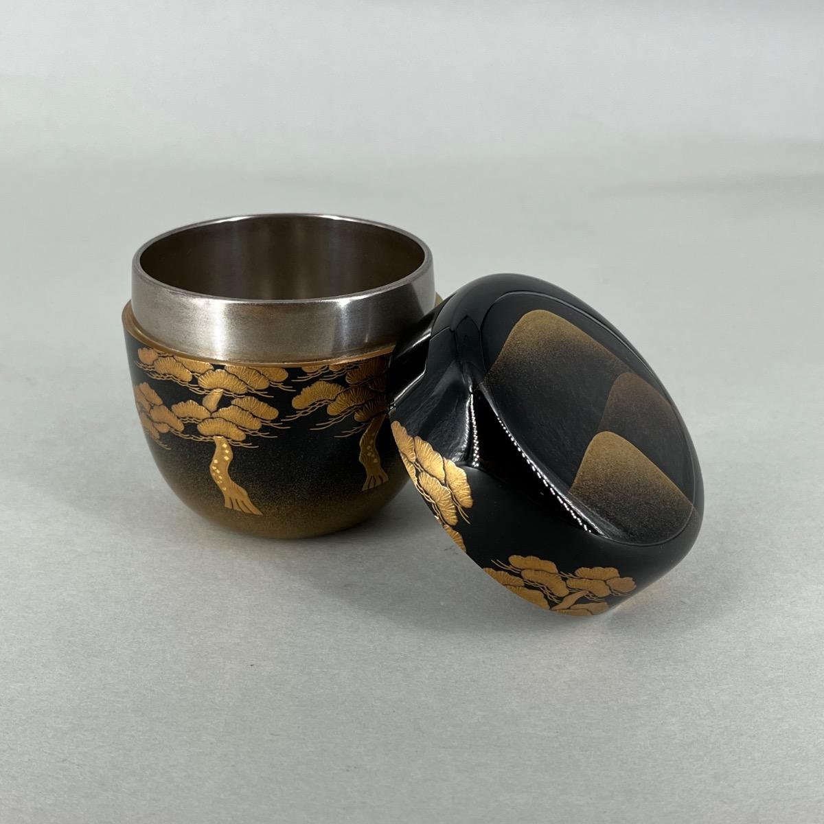 Natsume boîte à thé laquée pins et flots