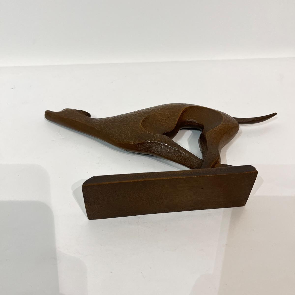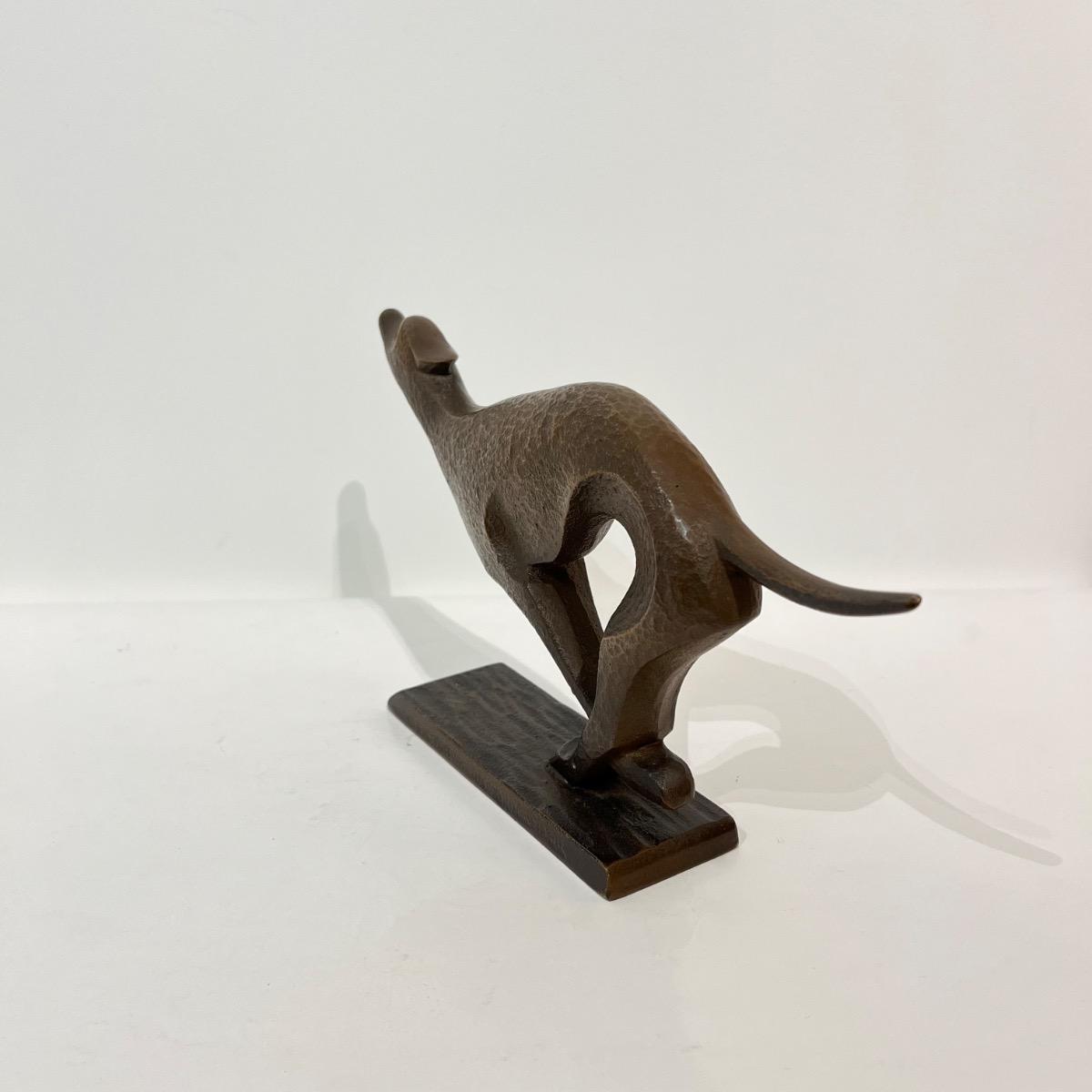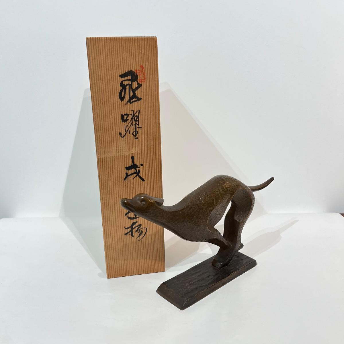 Okimono en bronze représentant un chien, a priori un lévrier, courant.